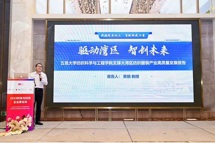 五邑大學大學紡織科學與工程學院院長黃鋼教授以《驅動灣區,智創未來》為題,結合大灣區產業優勢,剖析了科技如何成為時尚產業升級的 “引擎”;紡織服裝產業的發展,離不開高校的支持。五邑大學紡織科學與工程學院擁有廣東省唯一紡織工程本科專業,紮根僑鄉沃土,深耕紡織服裝知識和技術領域,為粵港澳大灣區培養輸送了大批高素質專業技術人才,是推動產業轉型升級的“人才搖籃”和“智力寶庫”。