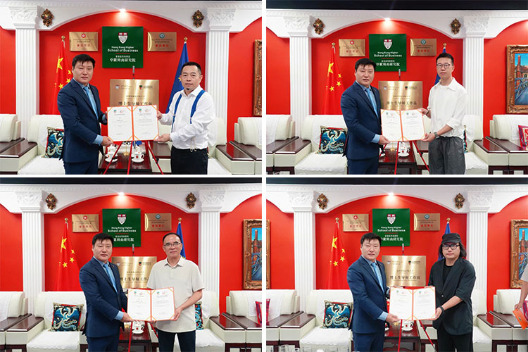 泰國西那瓦大學藝術與哲學學院院長於挺為香港高等商學院-中歐時尚研究院院長吳波教授、蘇州大學紡織與服裝工程學院洪岩教授、江西師範大學美術學院徐仂教授、太原理工大學輕紡工程學院薑中華教授頒發特聘教授與博士生導師聘書。