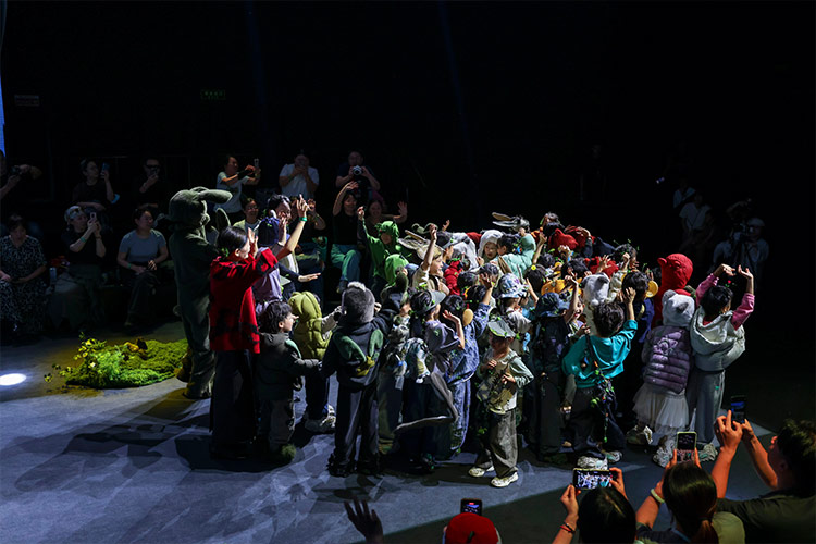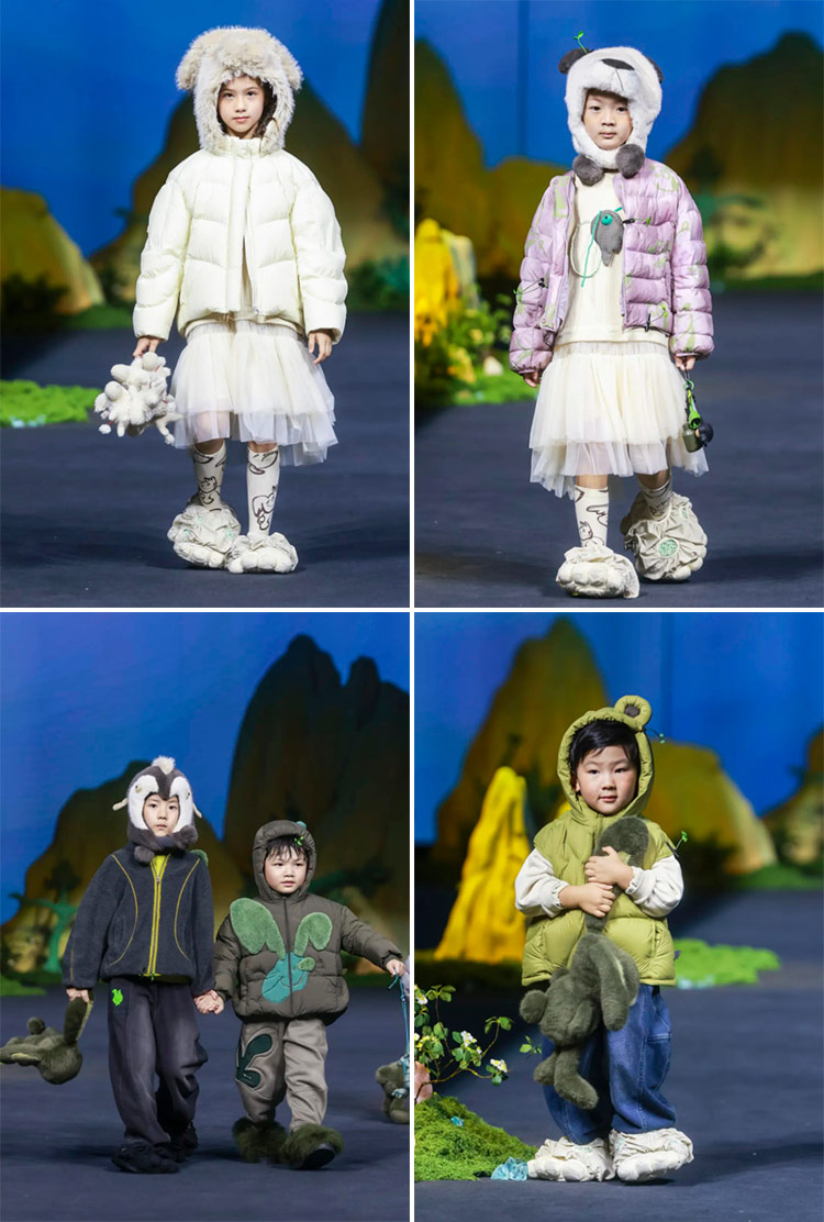 本次26SS上海時裝周大秀以《日著踐仔獸家族X山海經》系列為主題,將山海經中的 “招搖之山” 化為具象秀場靈感,打造出一個神獸破土、萬物生長的東方奇幻世界。用“踐行”連接孩童與自然,讓童裝成為孩子探索世界的“軟甲”,也成為自然生命力的延伸。成長不必急於綻放,像種子般踏實紮根、勇敢破土而生,每一步探索都是最美的成長印記。