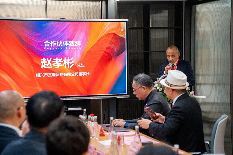 紹興傑選紡織貿易有限公司董事長趙孝彬(中)